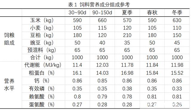 各階段飼喂飼糧營養水平參考:30~90d為童鴿期,90~150d為青年鴿時期,童鴿階段對蛋白要求較高,青年鴿對蛋白水平要求較低,夏季高溫對產蛋有所影響,采食量下降,蛋白水平應適當提高,冬季環境惡劣,溫度較低,應適當提高能量水平。具體參考如下表: