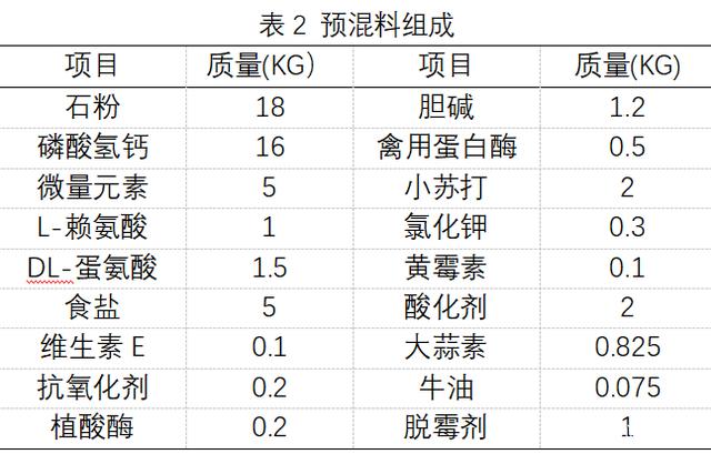預混料在顆粒料制備中添加,基本添加量如下,表中數量為每1000KG添加量。